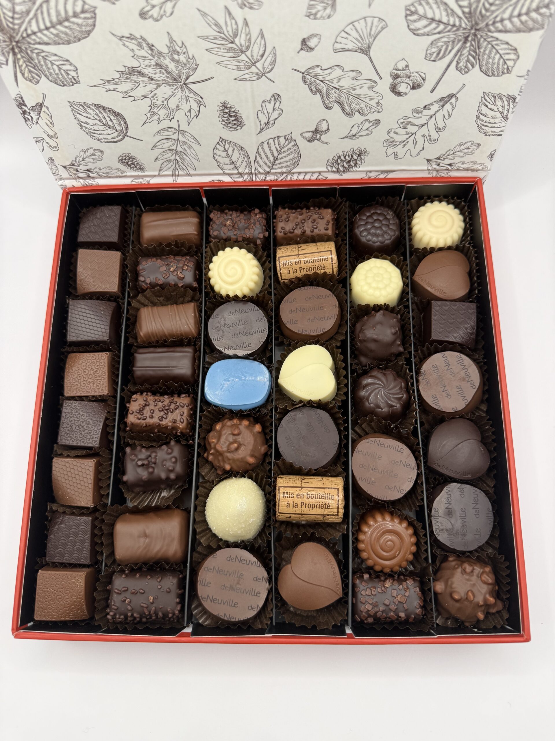 | Ingrédients | Ingrédients : Sucre, pâte de cacao, beurre de cacao, LAIT en poudre entier, AMANDES, NOISETTES, LAIT en poudre écrémé, beurre concentré (LAIT), sirop de glucose, crème stérilisée (LAIT), sirop de sucre inverti, humectant : sorbitol, cacao maigre en poudre, huile de tournesol, pâte de figues, graines de courges, noix de coco rapée, LAIT concentré écrémé sucré, poudre de lactosérum doux (contient du LACTOSE), caramel (sucre, eau), émulsifiant : lécithines (SOJA), purée de framboises, purée de cassis, pepites de cassis (jus de cassis), poudre de mûres ( jus de mûres concentré), extrait de chicorée concentré, café soluble 100% arabica Equateur, éclats de fèves de cacao torréfiées, épices, piment d'Espelette, fleur de sel de Guérande, sel, farine de BLE, farine de riz, farine de maïs, amidon de BLE, malt d'ORGE, blanc d'OEUFS en poudre, jus de citrons, jus d'oranges, arôme naturel de vanille, citron et noix de coco, anti oxydant : extrait de romarin, conservateur : sorbate de potassium, enzyme : invertase. |