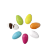 Amandes Grillées enrobées de Gianduja (38%) (chocolat au lait et pâte de noisettes). L’alliance surprenante du croustillant et du moelleux. Finition au sucre coloré façon galet. Environ 190 galets au kg, soit 45 par sachet de 250gr. Le Galet Lorenzo est disponible en différentes couleurs