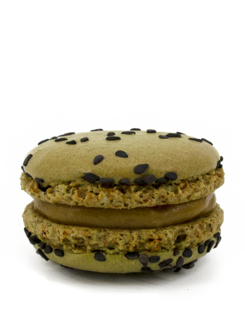 | Ingrédients | Ingrédients : Sucre, poudre d'AMANDE, blanc d’OEUF, beurre (matières grasses végétales et animales (LAIT)), chocolat blanc (LAIT) (30.9% : sucre, beurre de cacao, poudre de LAIT entier, poudre de LAIT écrémé, émulsifiant : lécithines (SOJA), arôme naturel de vanille), LAIT demi-écrémé, crème 20% (LAIT), pâte de PISTACHE 100% (15.22%), pistaches salées torréfiées concassées, farine de maïs, arôme de PISTACHE, sésame noir, E141, E160 E415, E330. |