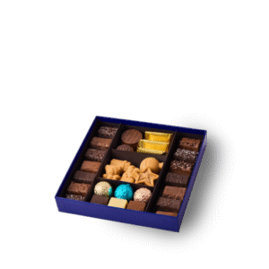 Plus généreux et tout aussi festif, notre Moyen Coffret de Chocolats Festifs De Neuville est l’accompagnement parfait pour un Noël placé sous le signe de la gourmandise. Présenté dans un écrin aux couleurs chaleureuses des fêtes, il renferme un bel assortiment de bonbons de chocolats — pralinés et ganaches de la collection « Tellement Français » — ainsi que des boules en chocolat au lait et noir, des giandujas fondants et de délicats chocolats blonds pour une note originale.