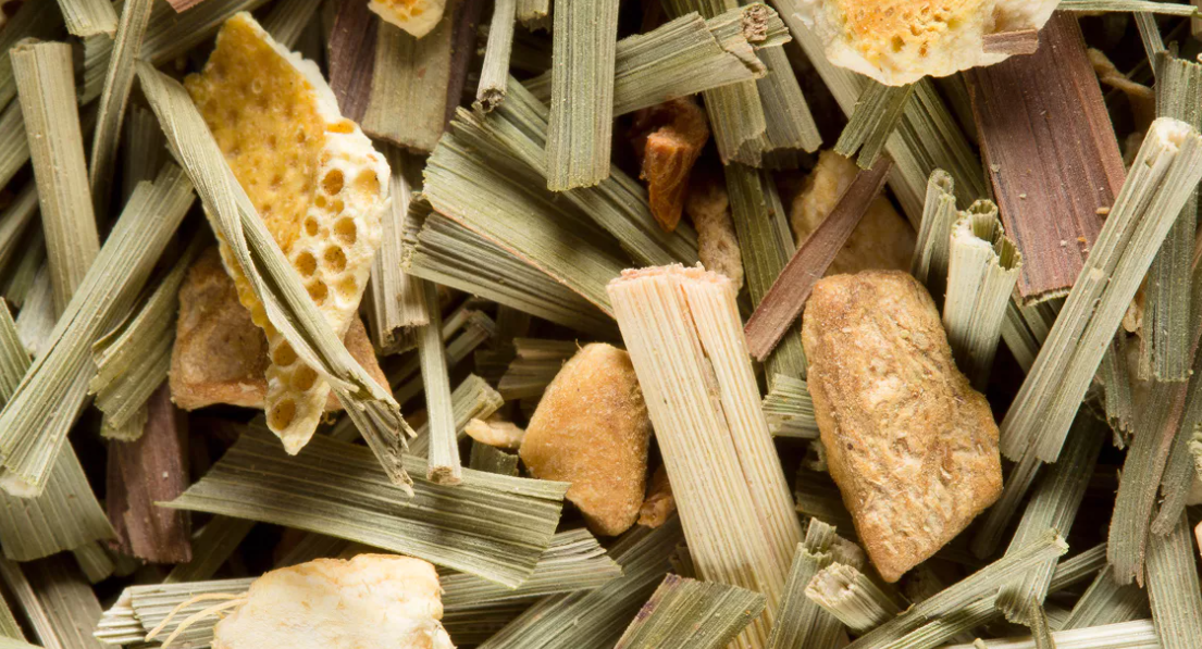 Citronnelle, arôme citron vert, morceaux de pomme, morceaux de gingembre, écorces d'orange